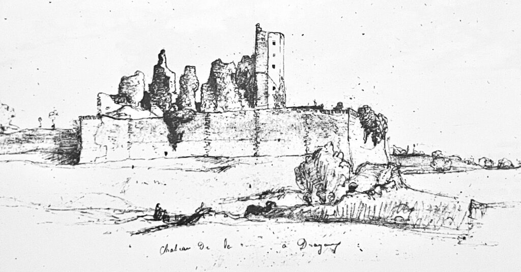 Le passage de l’archéologue et dessinateur girondin Léo Drouyn en 1846 offre un témoignage inestimable, un « instantané » de l’état du château après les démolitions et avant toute restauration moderne.