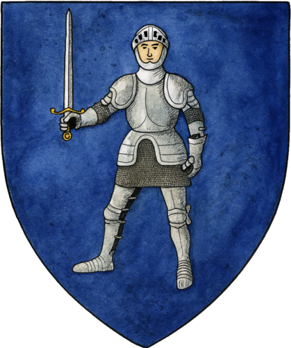 D'azur à un homme armé de toutes pièces d'argent, la visière levée, tenant de la main dextre une épée de même, la garde d'or.